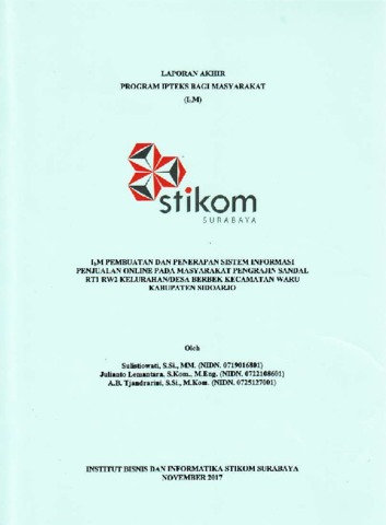 LPM : IbM Pembuatan dan Penerapan Sistem Informasi Penjualan Online pada Masyarakat Pengrajin Sandal RT1 RW2 Kelurahan/Desa Berbek Kecamatan Waru Kabupaten Sidoarjo.