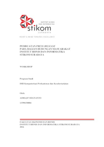 Vidananto, Adhaji (2016) LKP : Pembuatan Press Release pada Bagian Hubungan Masyarakat Institut Bisnis dan Informatika Stikom Surabaya. Undergraduate thesis, Institut Bisnis dan Informatika Stikom Surabaya.