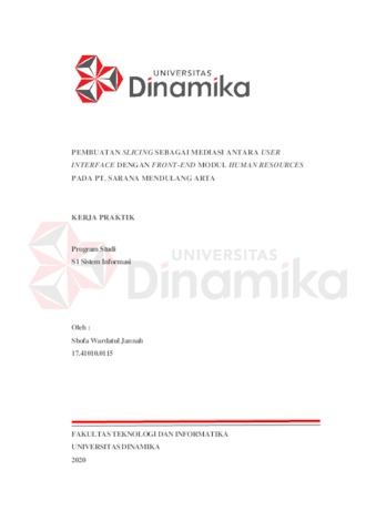 Jannah, Shofa Wardatul (2020) LKP : Pembuatan Slicing sebagai Mediasi Antara User Interface dengan Front-End Modul Human Resources pada PT. Sarana Mendulang Arta. Undergraduate thesis, Universitas Dinamika.