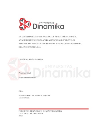 Apsari, Poppi Chinthya Iman (2022) TA: Evaluasi Desain User Interface Berdasarkan Hasil Analisis Kesuksesan Aplikasi McDonald's dengan Perspektif Pengguna di Surabaya Menggunakan Model Delone dan Mclean. Undergraduate thesis, Universitas Dinamika.